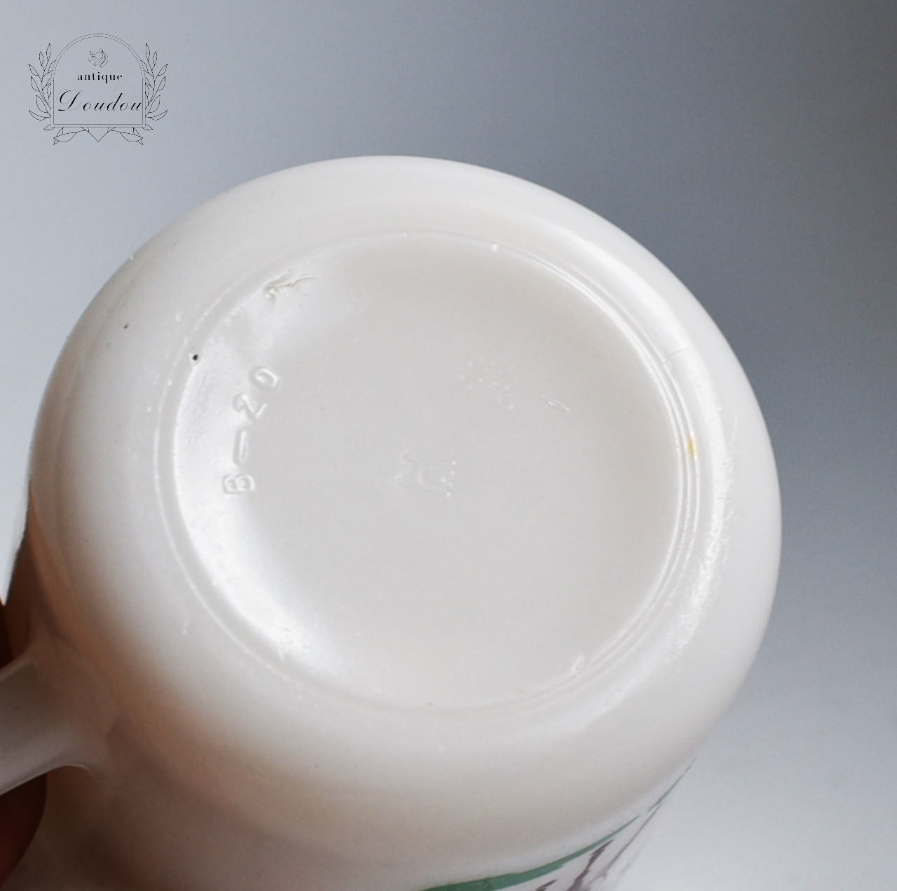 小鹿と青い鳥が描かれた、このヴィンテージチャイルドマグは、ただのドリンク用品ではなく、当時の愛情と信仰がそっと伝わってくる宝物です。