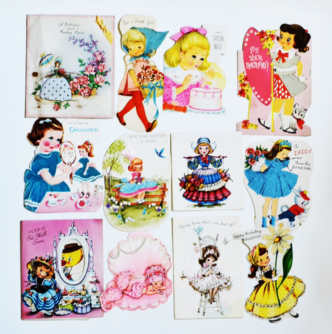 1950〜60年代のアメリカで作られた、少女モチーフのヴィンテージ・グリーティングカード12枚セット。