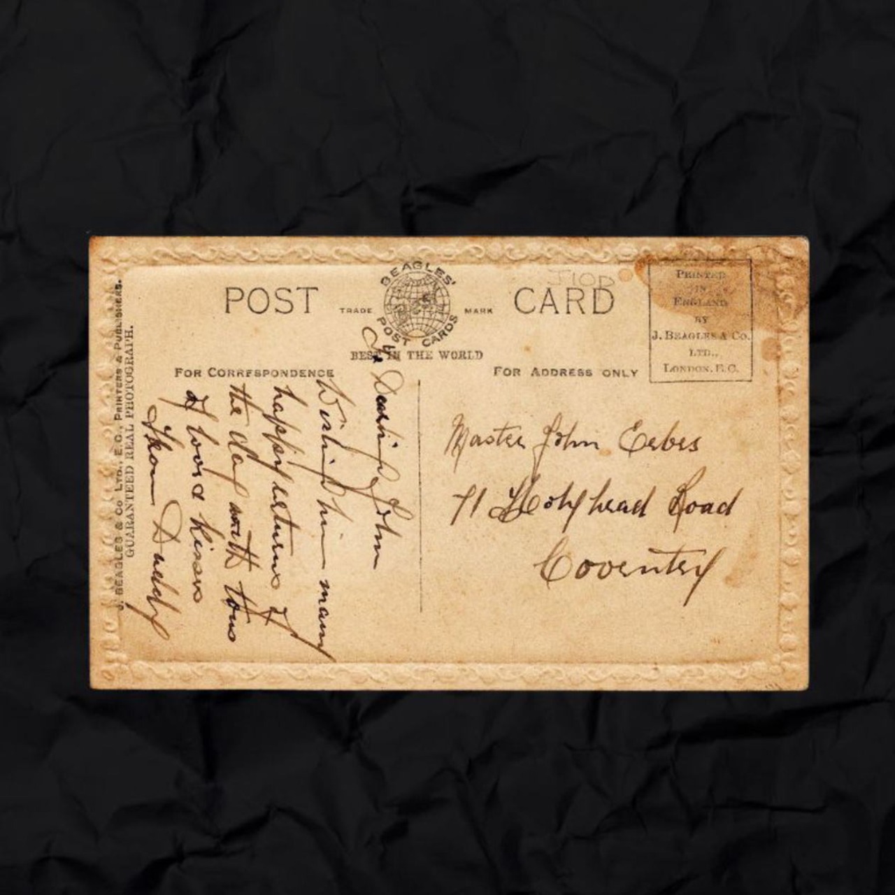 イギリスのアンティークバースデーポストカードです。