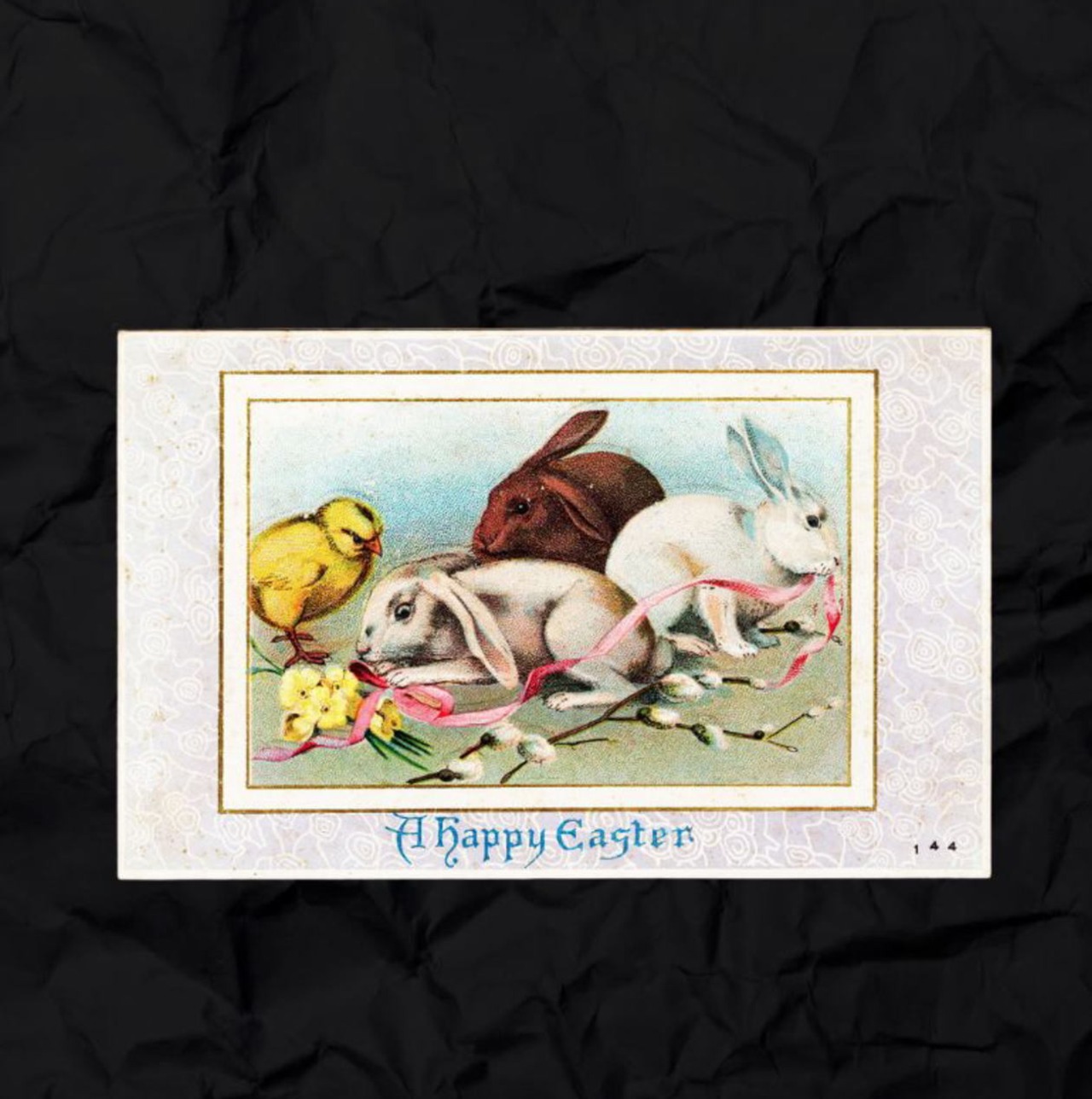 うさぎとうさぎ、そして小さなひよこが描かれた